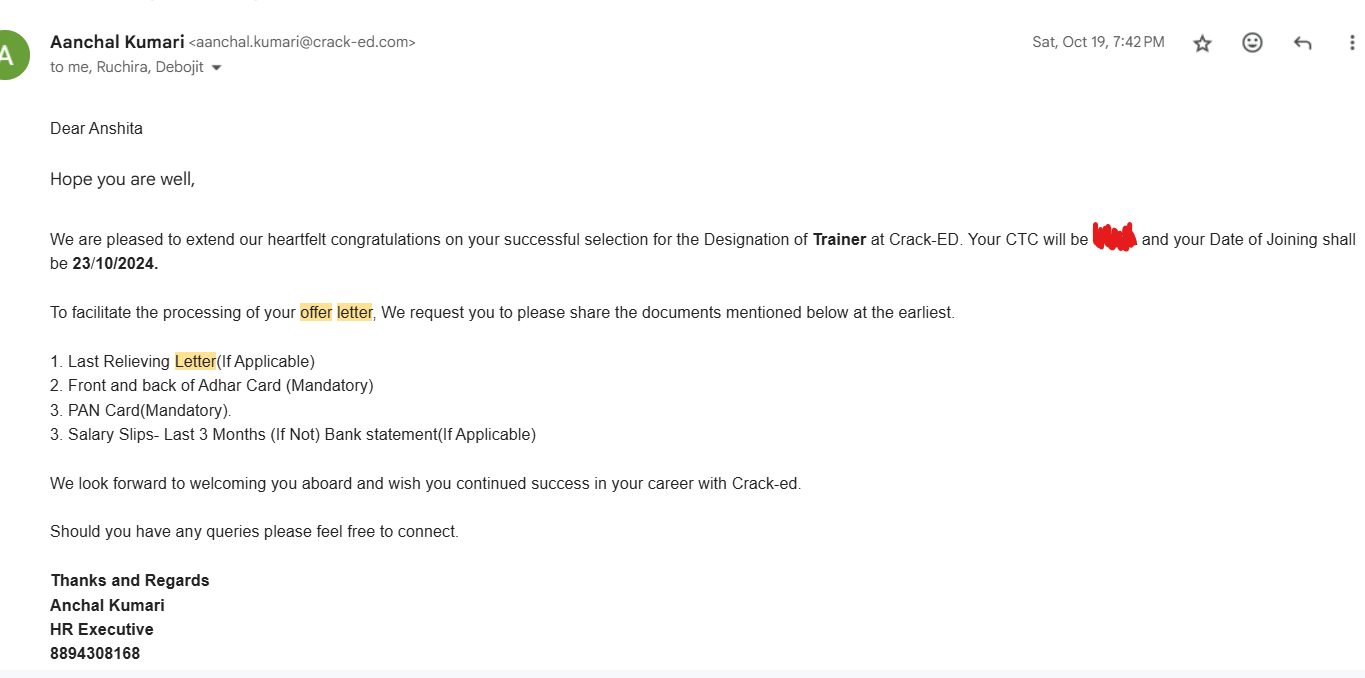 5.2.1 Average percentage of placement of outgoing students during the last five years