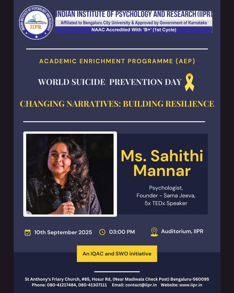 Today at IIPR, we marked World Suicide Prevention Day with an insightful Invited Talk under our Academic Enrichment Programme (AEP).